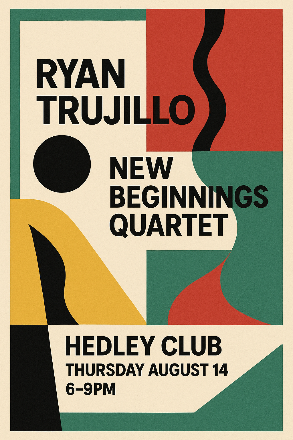 My New Beginnings Quartet will be performing 6-10pm at the Hotel De Anza Hedley Club Lounge!
